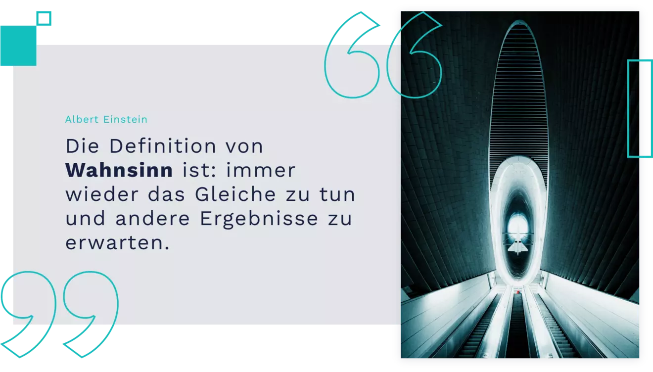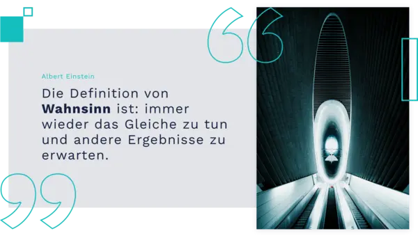Von Einstein stammt das bekannte Zitat: „Die Definition von Wahnsinn ist: immer wieder das Gleiche zu tun und andere Ergebnisse zu erwarten.“ Möchte man Transformation und Fortschritt im Unternehmen, dann kommt man um gewisse Risiken nicht herum. Aber was passiert, wenn wir ständig Risiken vermeiden? Dann verlieren wir das Urteilungsvermögen für Risiken und schaffen eine Unternehmenskultur, die nicht auf Veränderung ausgelegt ist. Solange das Tagesgeschäft funktioniert, ist das unproblematisch. Sobald das Unternehmen jedoch umdenken oder sich neu aufstellen muss, wird dies zu einem wirklichen Risiko, insbesondere angesichts der Veränderungen auf dem Markt durch den Einfluss der Digitalisierung.